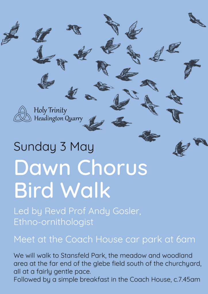 Events News Notices Dawn Chorus Bird Walk Published 26 April 2026 Sunday 3 May at 6am Bird walk flyerDownload